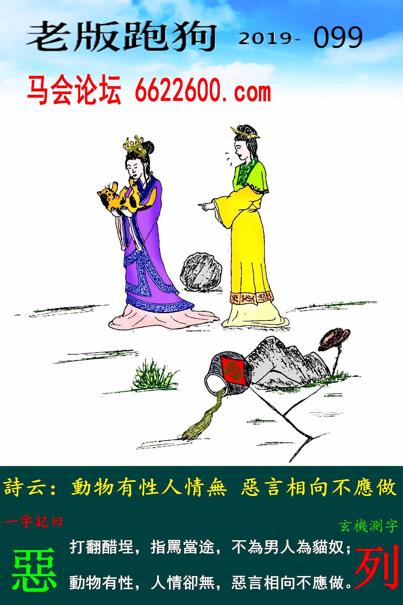 099期:老版跑狗一字記之曰【惡】玄機測字《列》