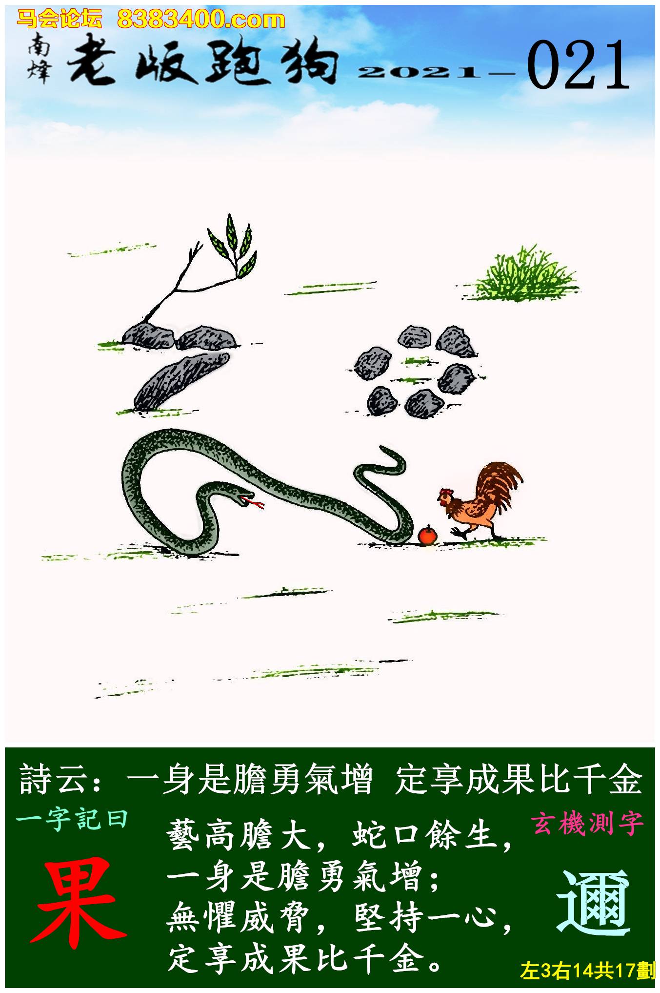 主题 : 021期老版跑狗一字記之曰:【果】玄機測字:《邇》