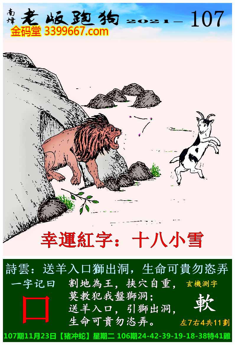 主题 : 107期老版跑狗一字記之曰:【口】玄機測字:《軟》