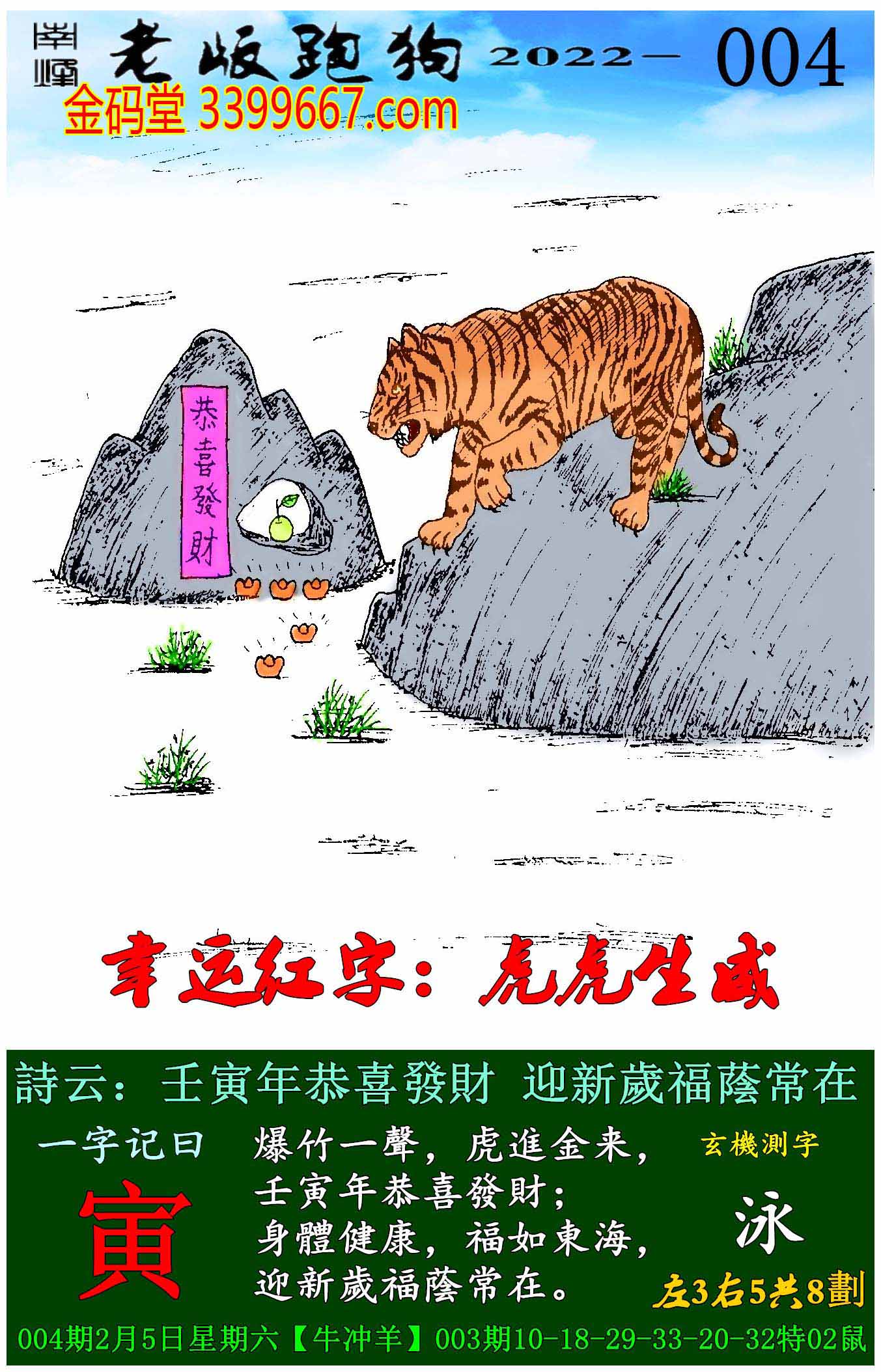 004期老版跑狗一字記之曰:【寅】
