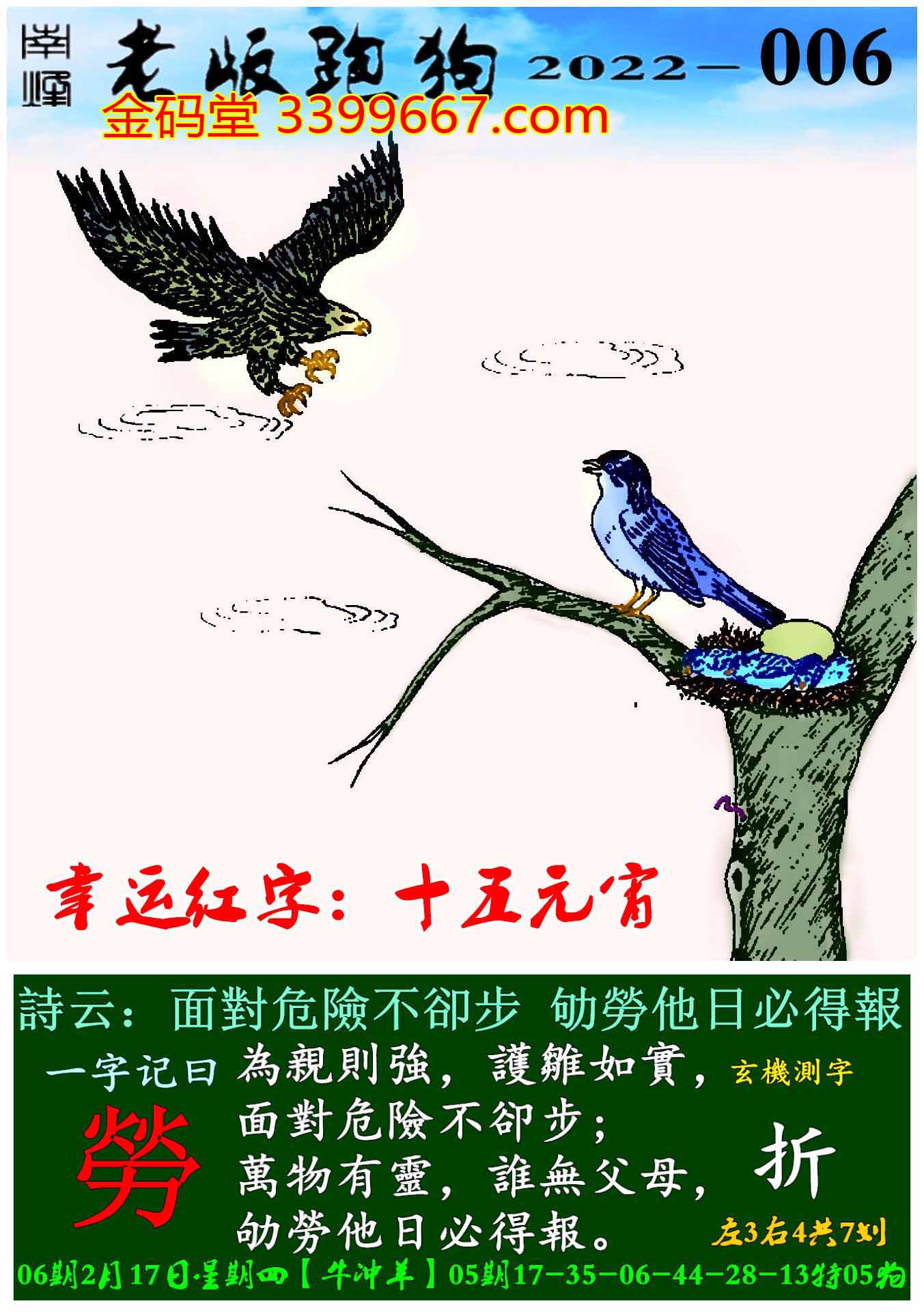 006期老版跑狗一字記之曰:【勞】