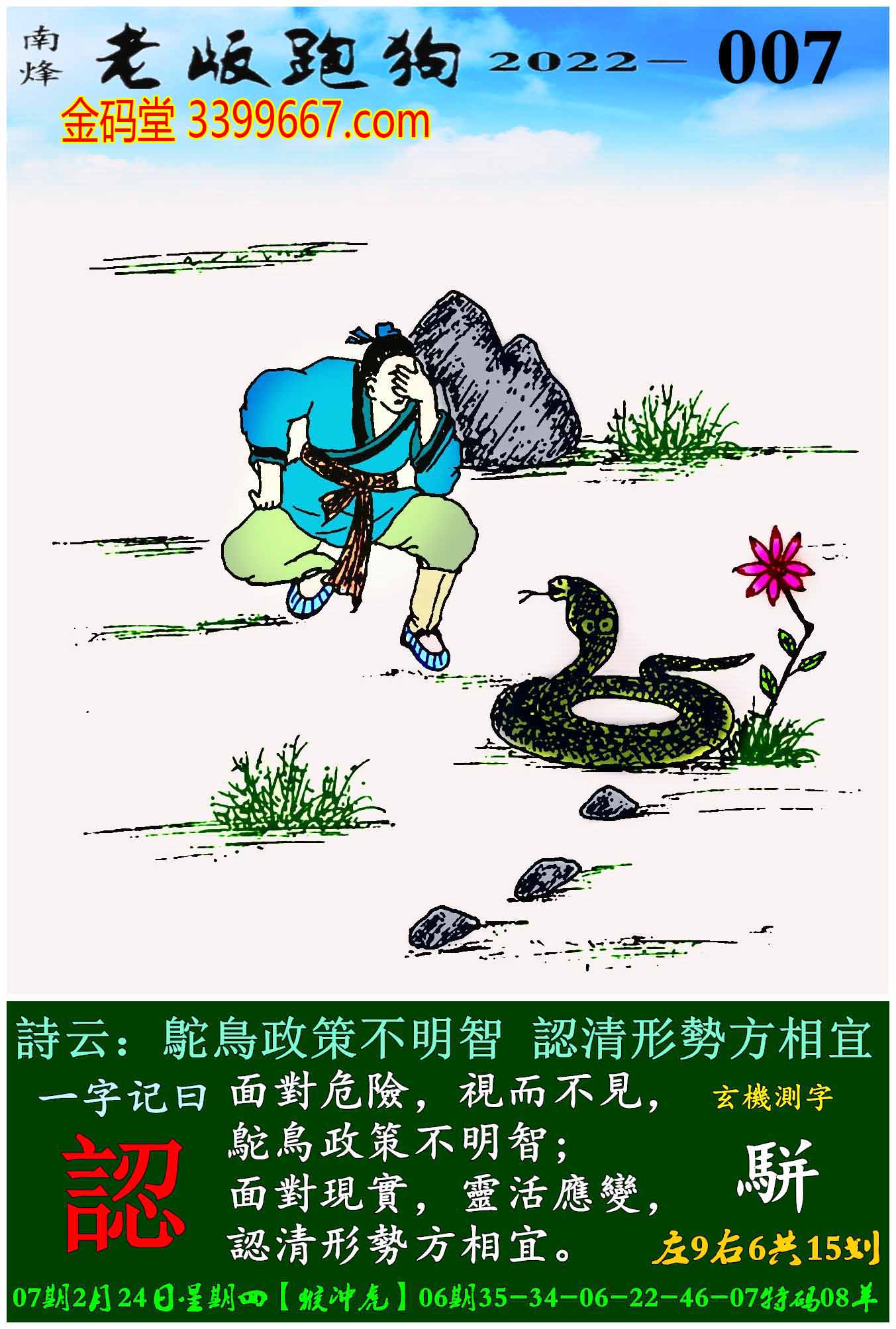 007期老版跑狗一字記之曰:【認】
