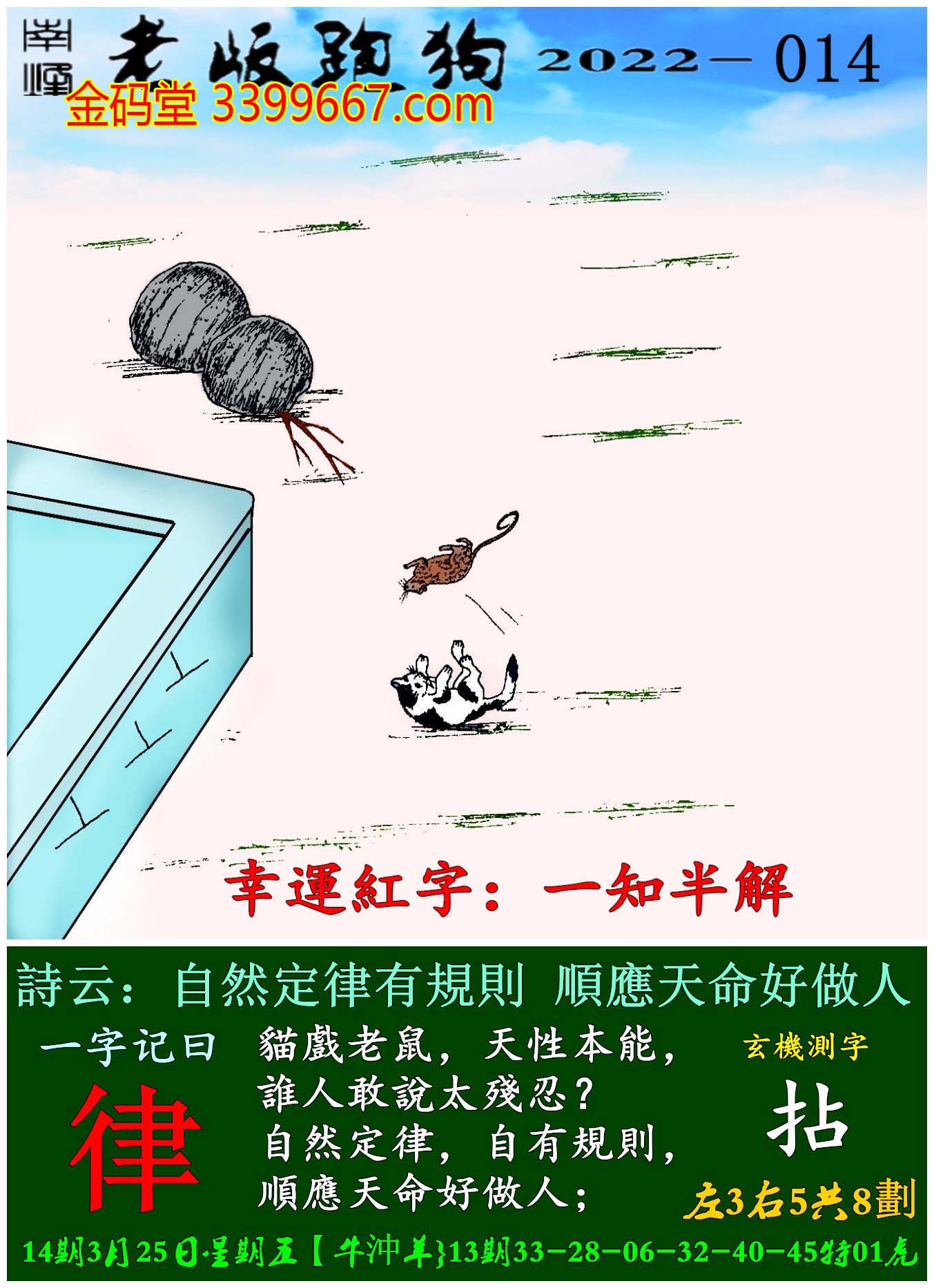 主题 : 014期老版跑狗一字記之曰:【律】玄機測字:《拈》