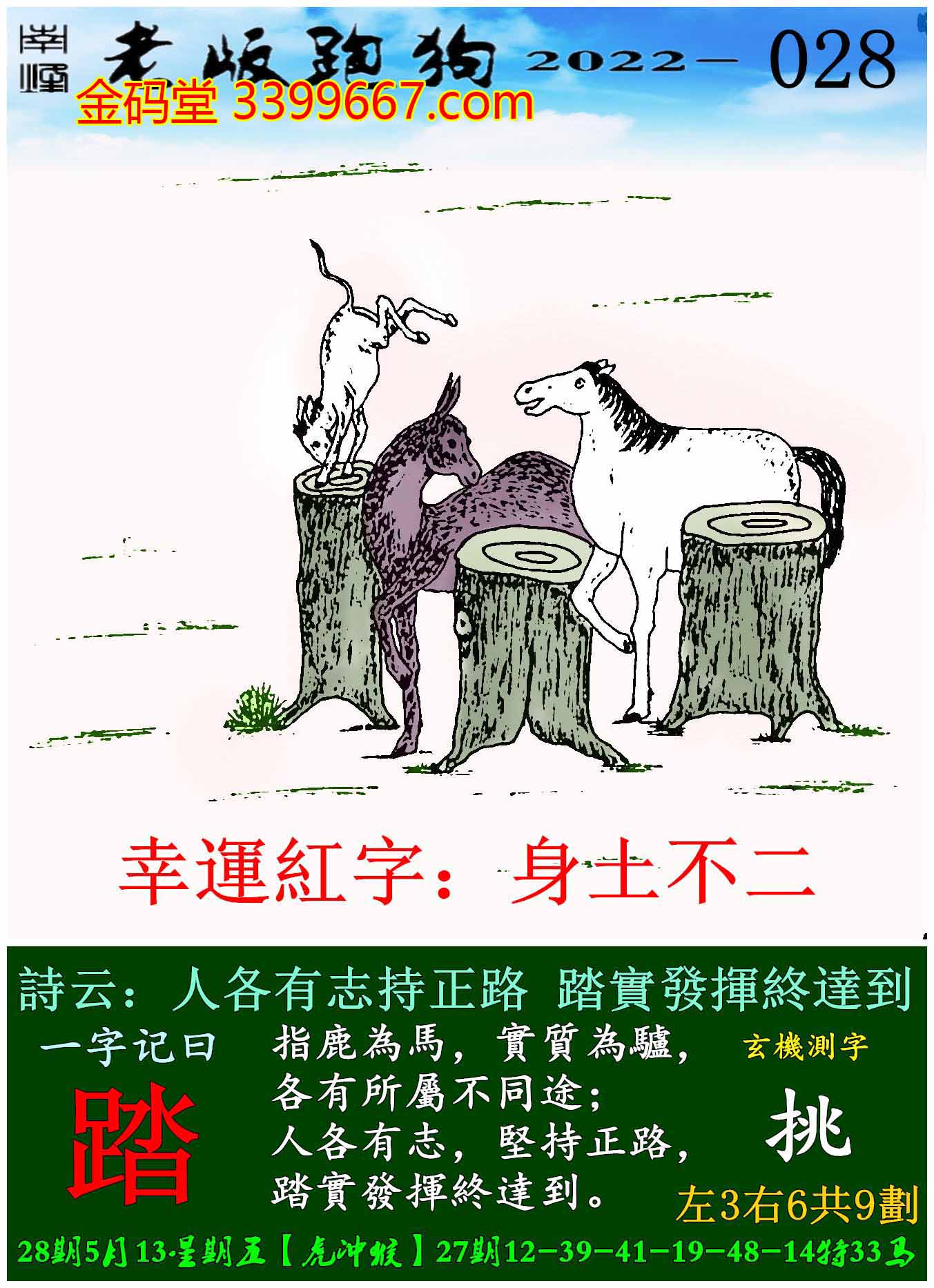 主题 : 028期老版跑狗一字記之曰:【踏】玄機測字:《挑》