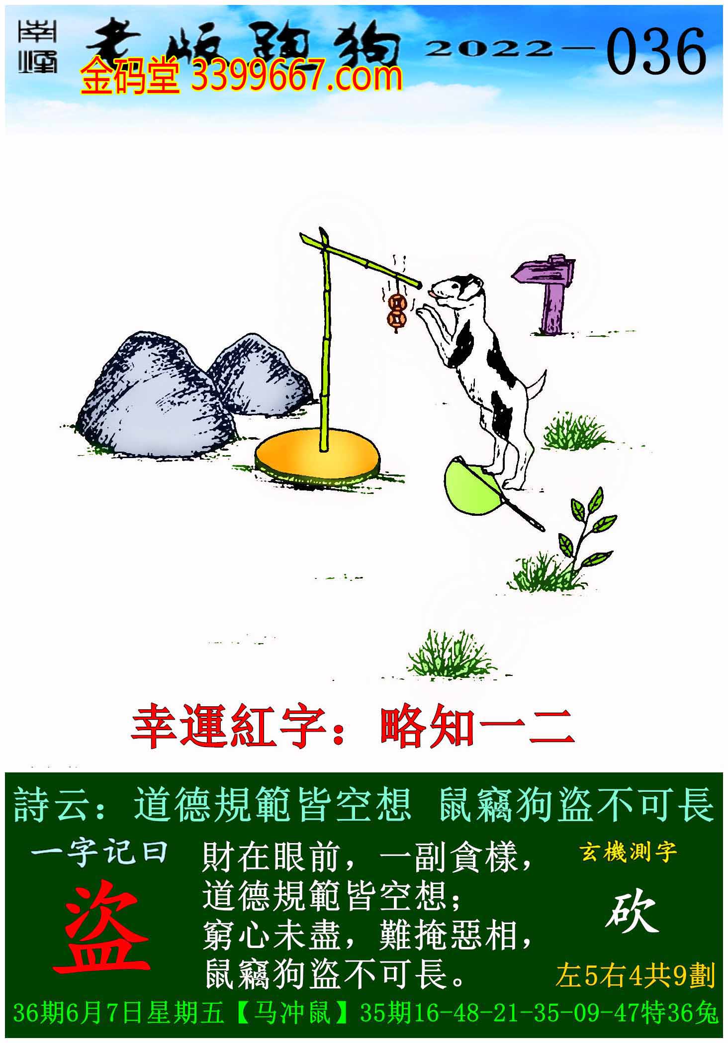 036期老版跑狗一字記之曰:【盜】玄機測字:《砍》