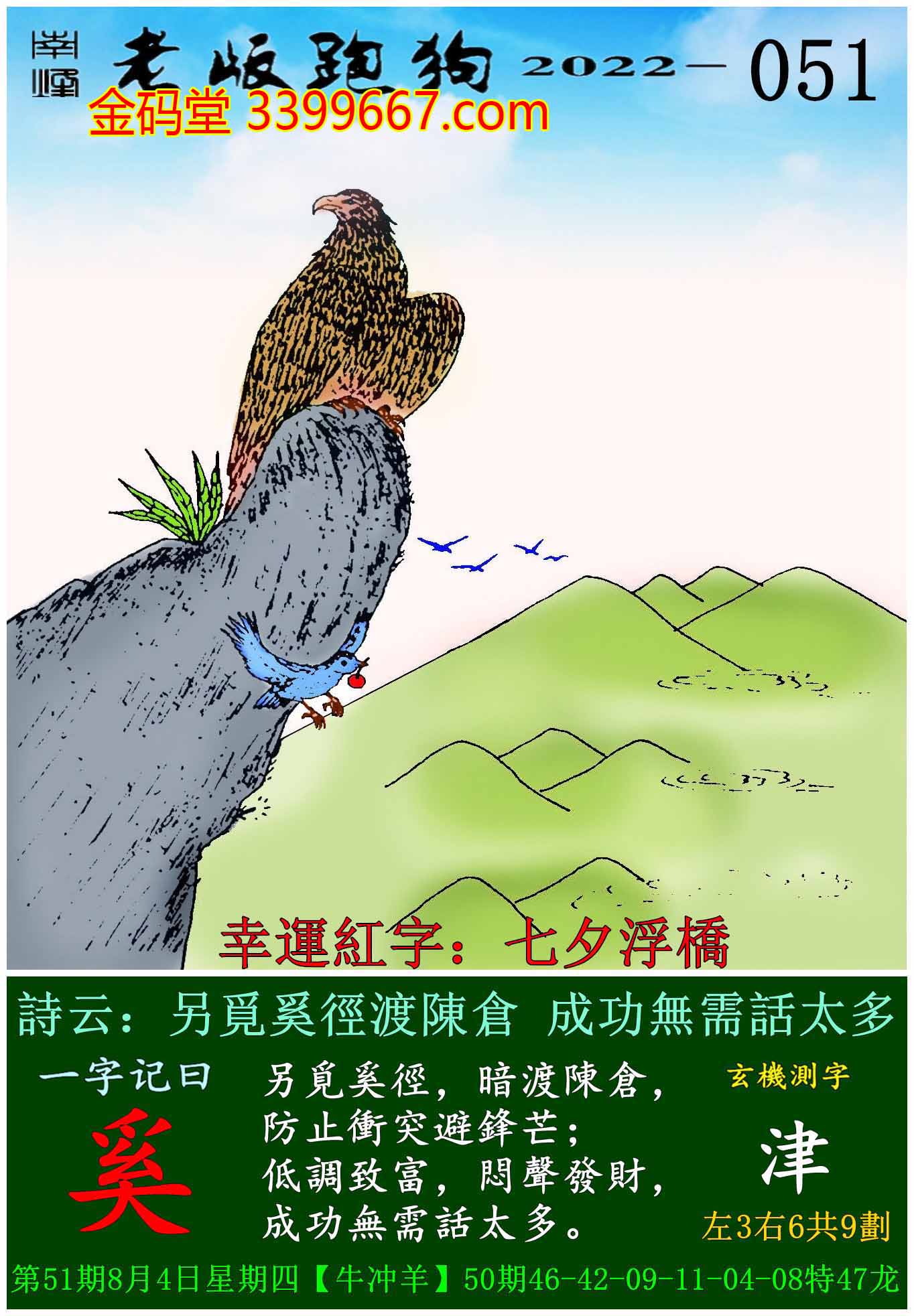主题 : 051期老版跑狗一字記之曰:【奚】玄機測字:《津》