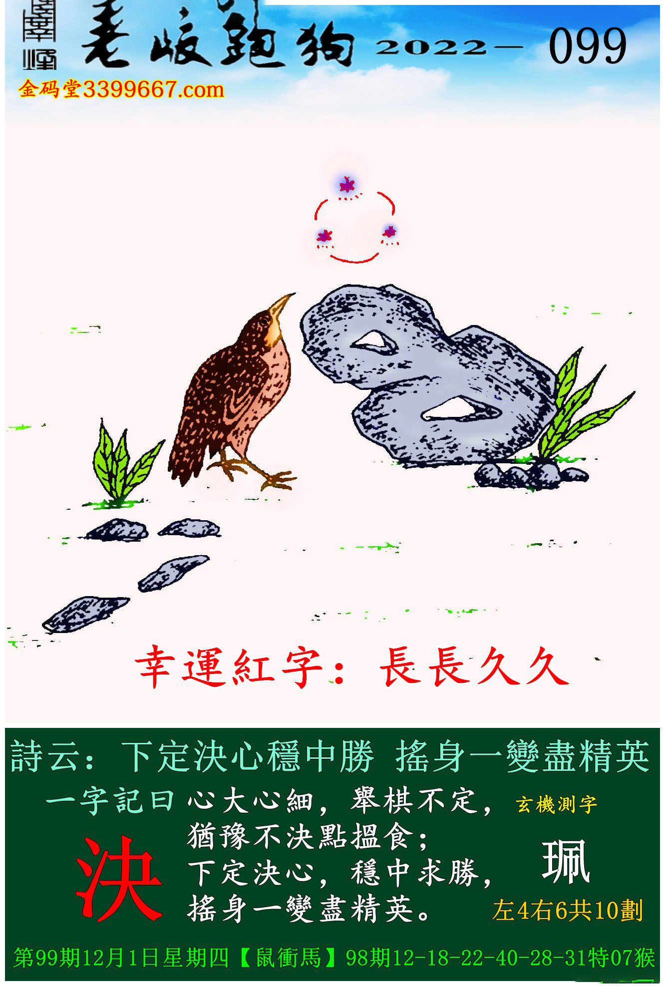 099期老版跑狗一字記之曰:【決】