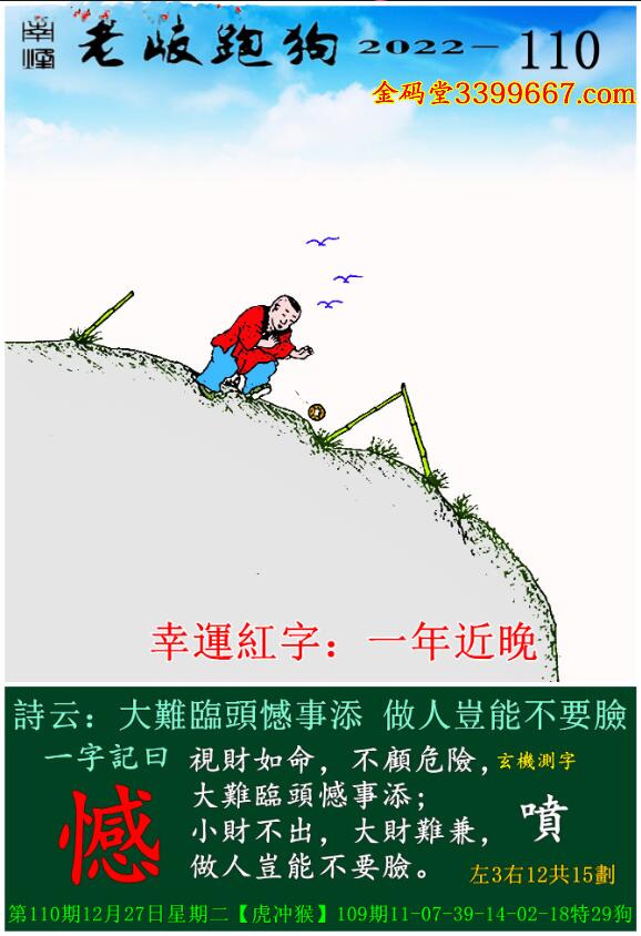 主题 : 110期老版跑狗一字記之曰:【憾】 玄機測字:《噴》
