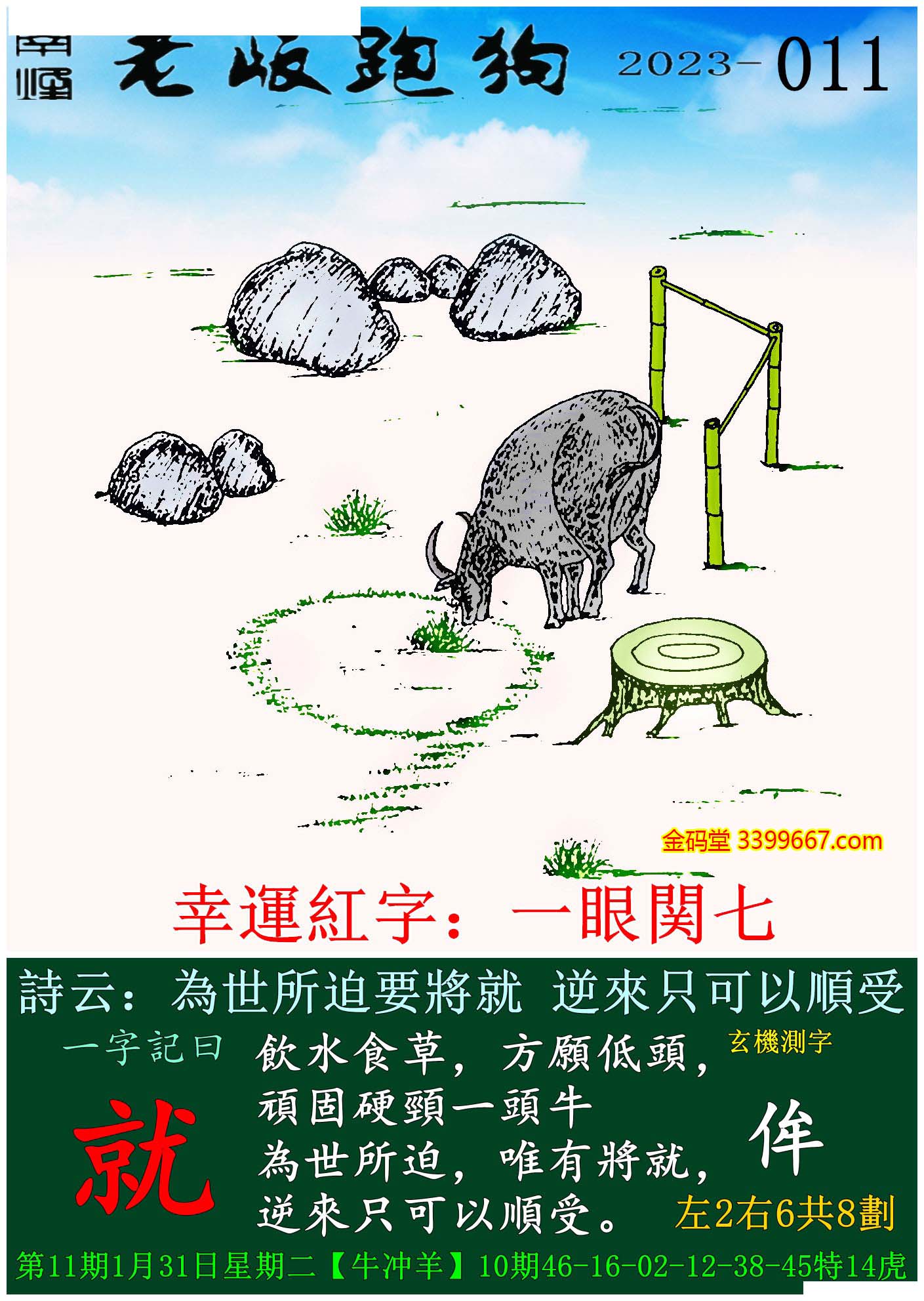 011期老版跑狗一字記之曰:【就】 玄機測字:《侔》