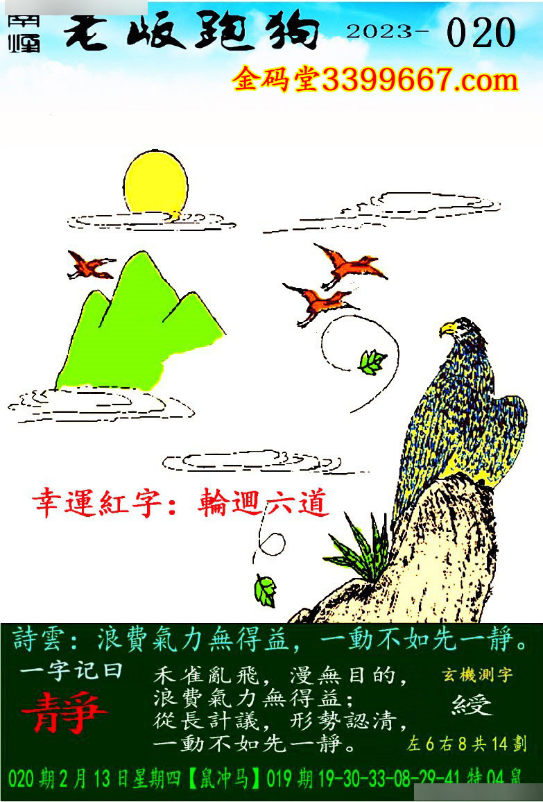 020期老版跑狗一字記之曰:【靜】