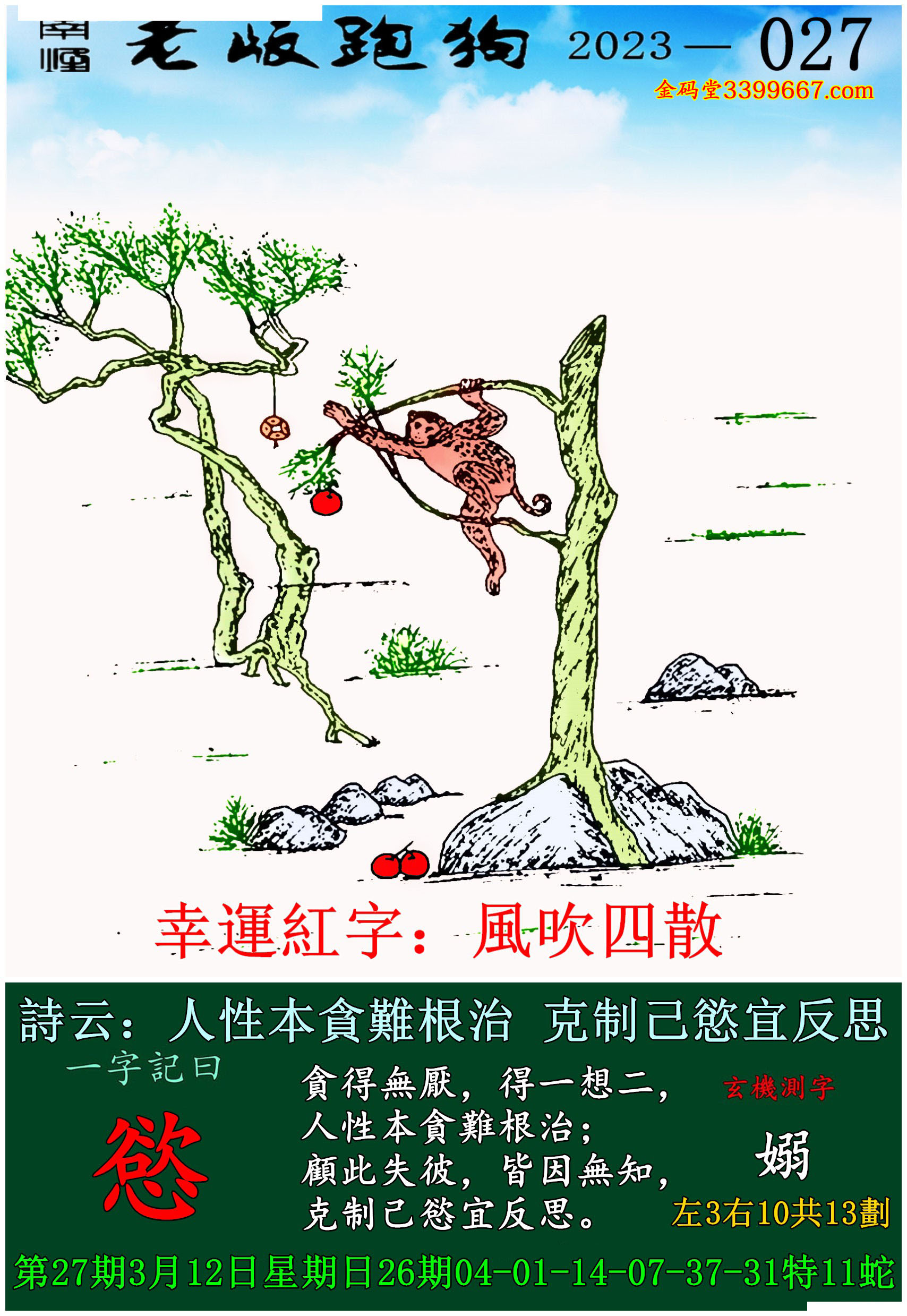 主题 : 027期老版跑狗一字記之曰:【慾】玄機測字:《嫋》