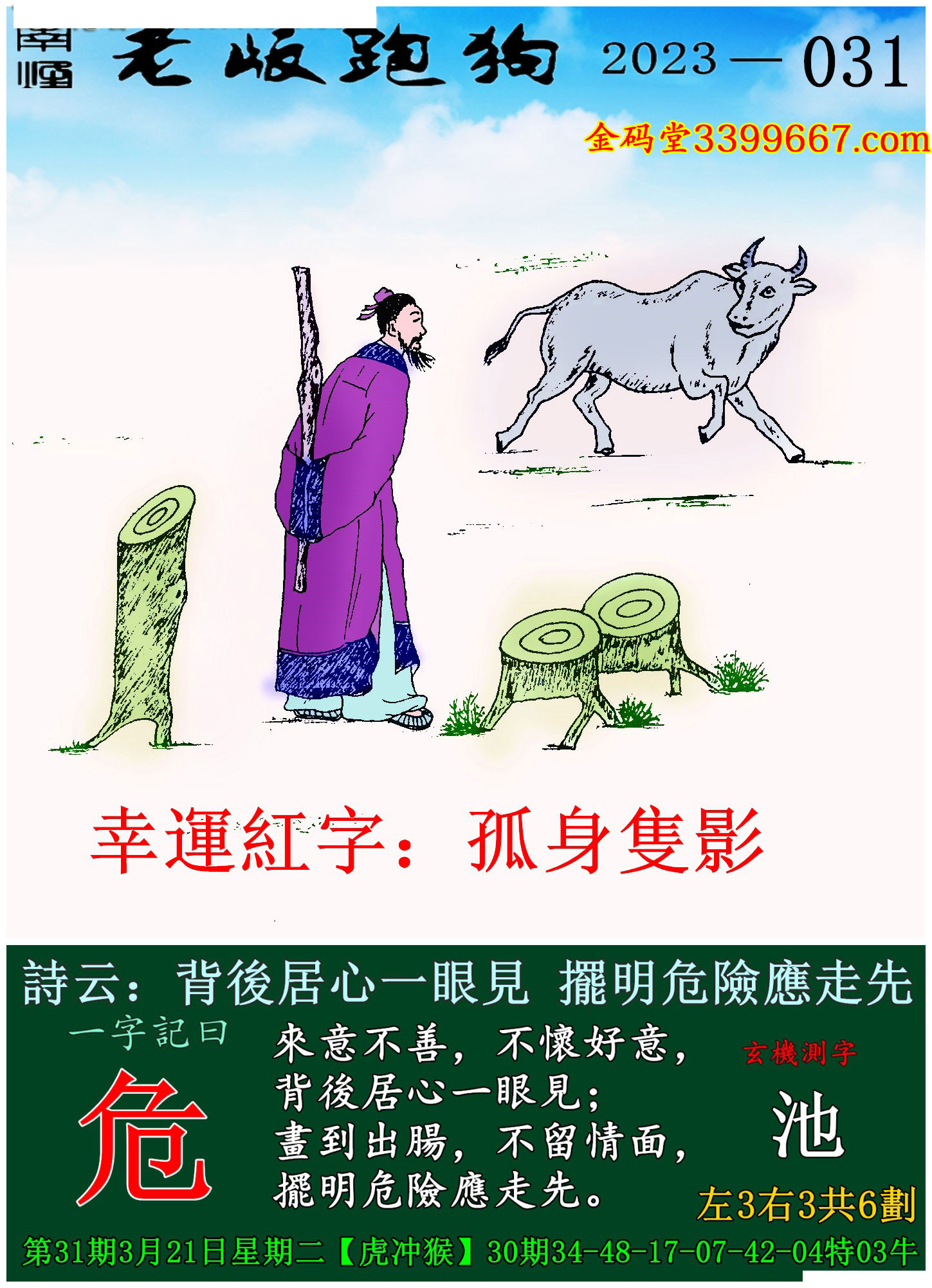 031期老版跑狗一字記之曰:【危】