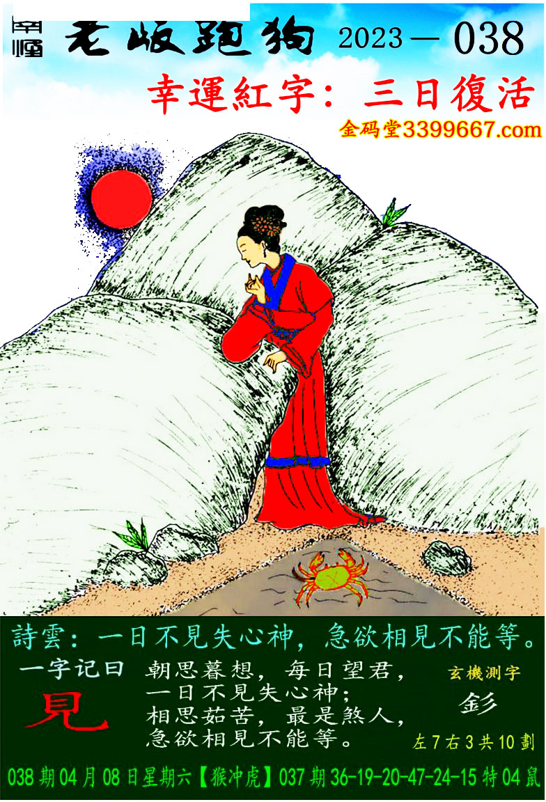 038期老版跑狗一字記之曰:【見】玄機測字:《釤》