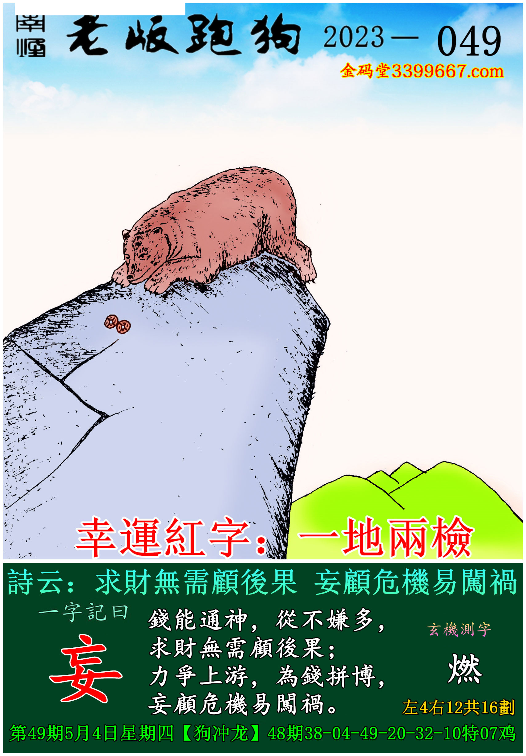 049期老版跑狗一字記之曰:【妄】