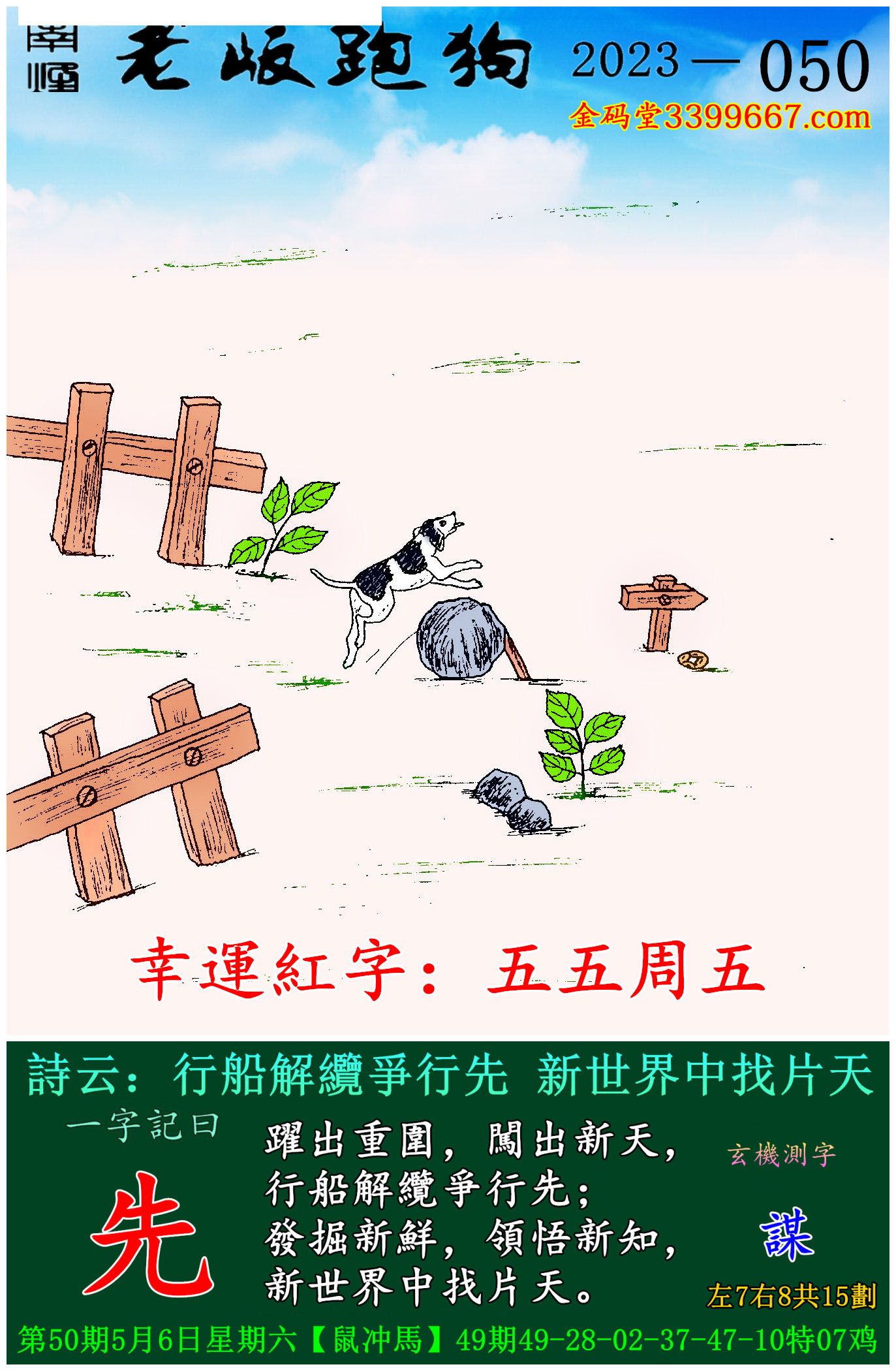 050期老版跑狗一字記之曰:【先】