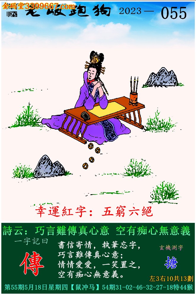 055期老版跑狗一字記之曰:【傳】