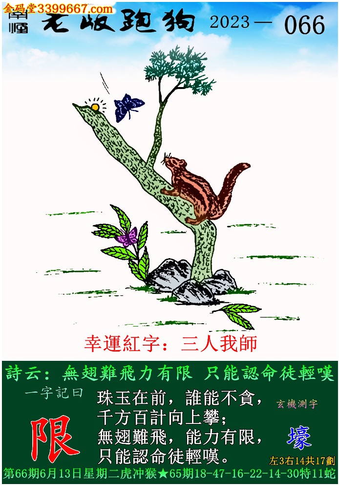 066期老版跑狗一字記之曰:【限】