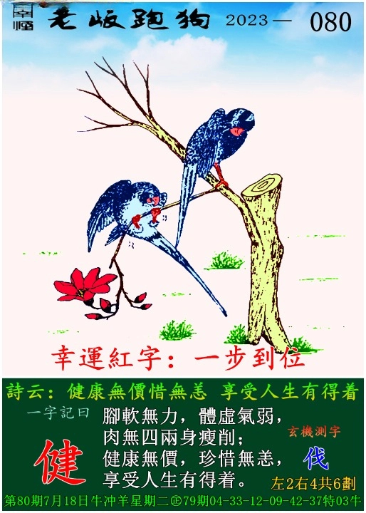 080期老版跑狗一字記之曰:【健】