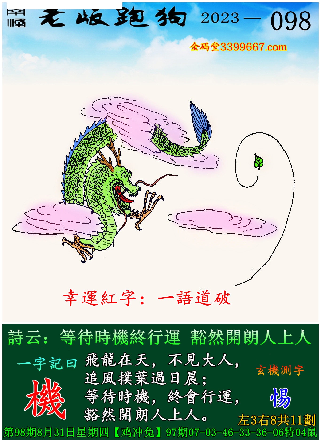098期老版跑狗一字記之曰:【機】