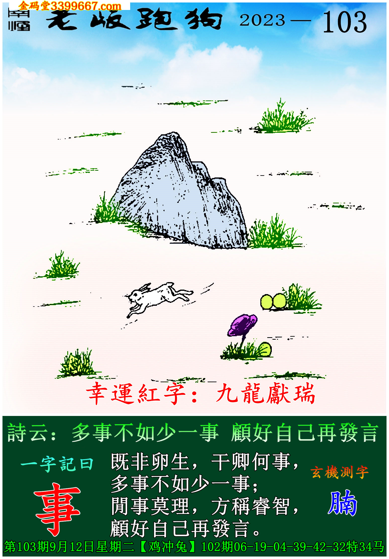 103期老版跑狗一字記之曰:【事】
