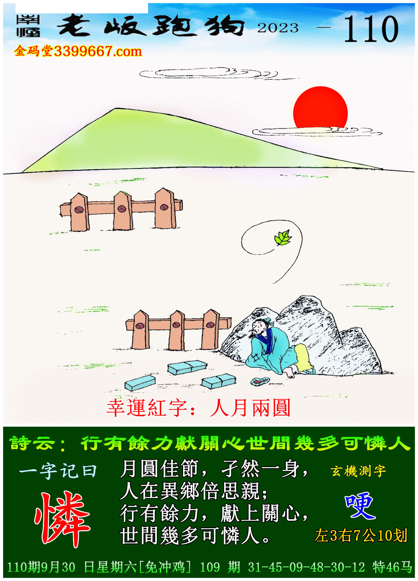 主题 : 110期老版跑狗一字記之曰:【憐】玄機測字:《哽》