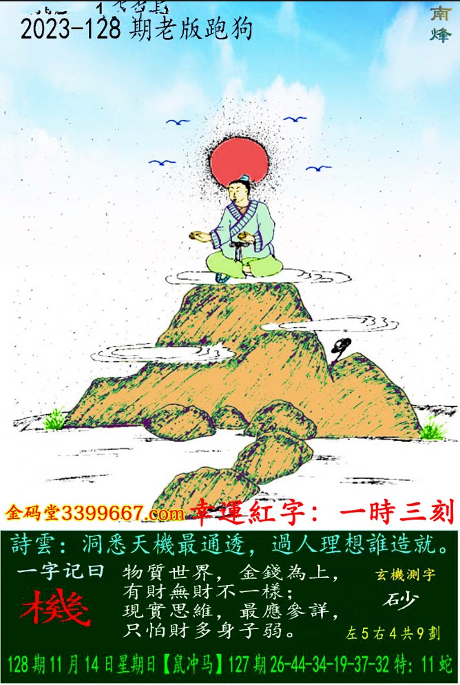 主题 : 128期老版跑狗一字記之曰:【機】 玄機測字:《砂》