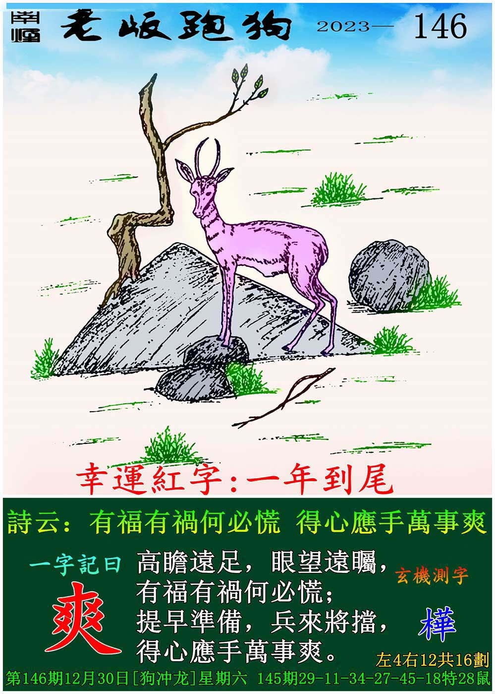 146期老版跑狗一字記之曰:【爽】