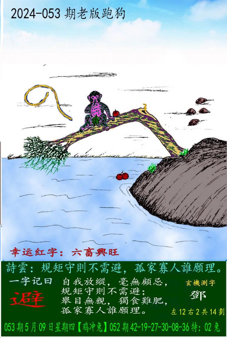 053期老版跑狗一字記之曰:【避】