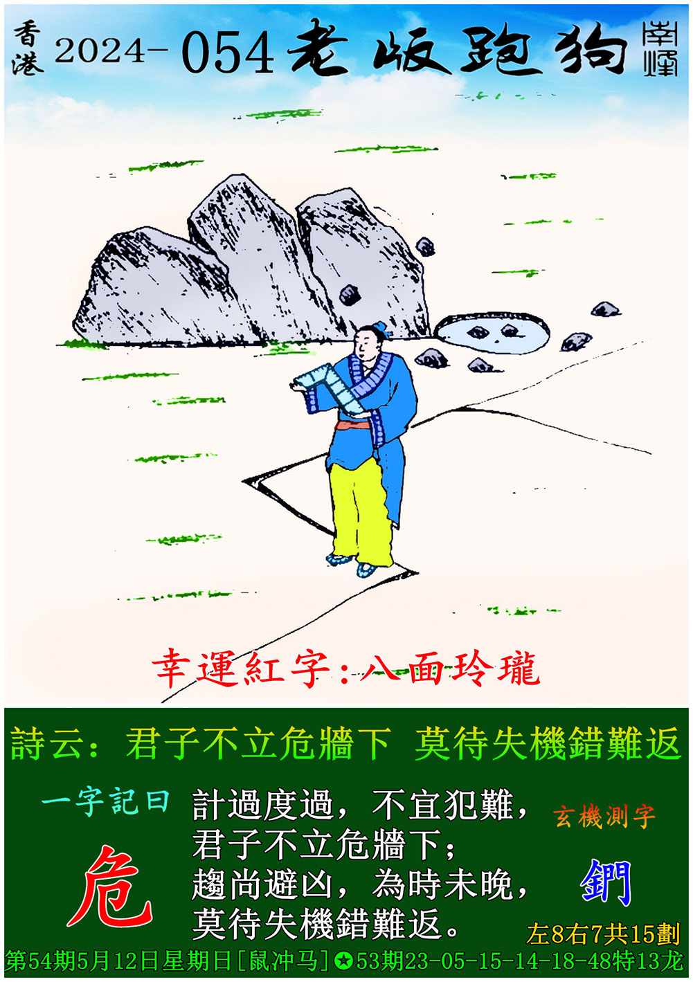 主题 : 054期老版跑狗一字記之曰:【危】 玄機測字:《鍆》