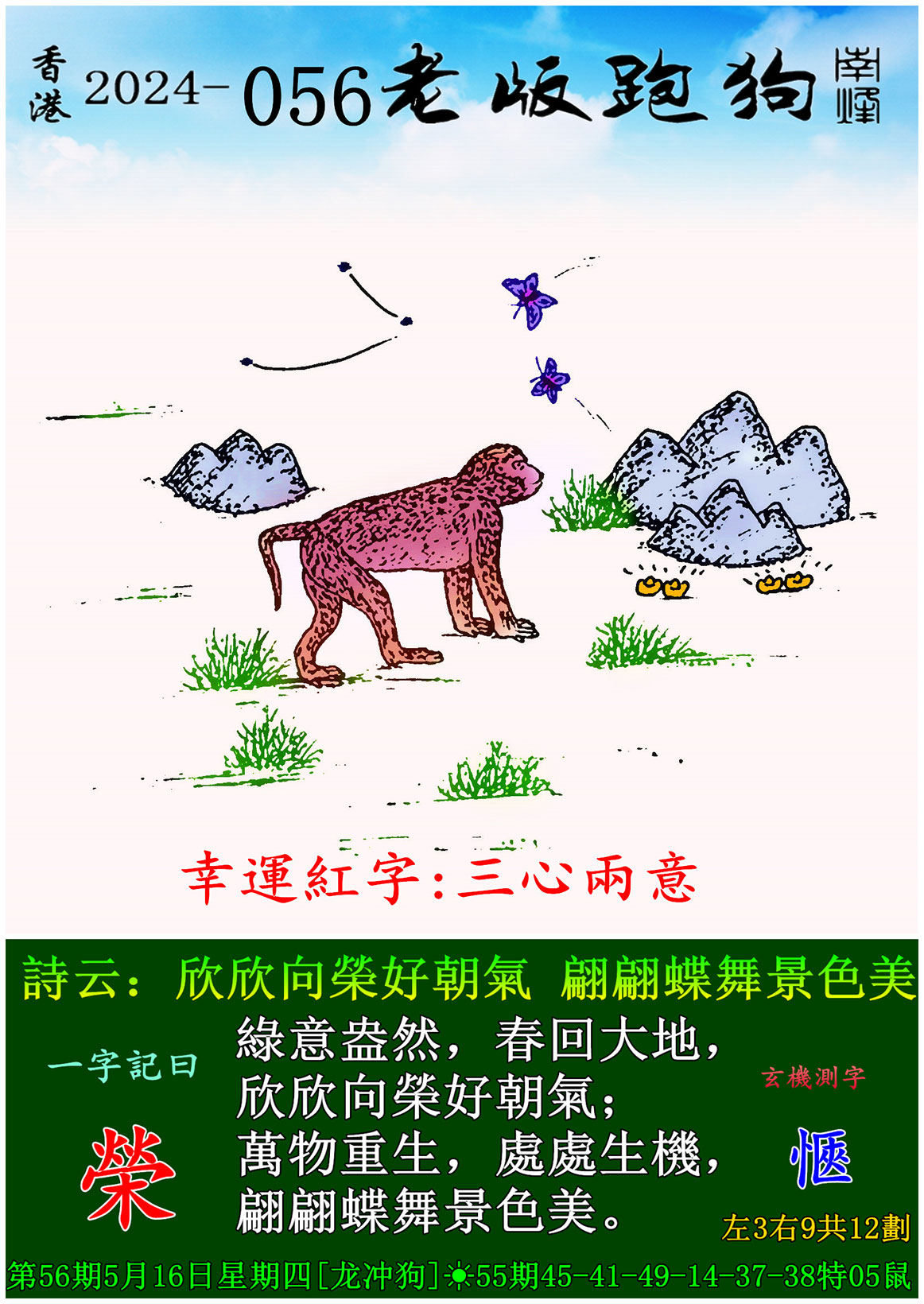 主题 : 056期老版跑狗一字記之曰:【榮】 玄機測字:《愜》