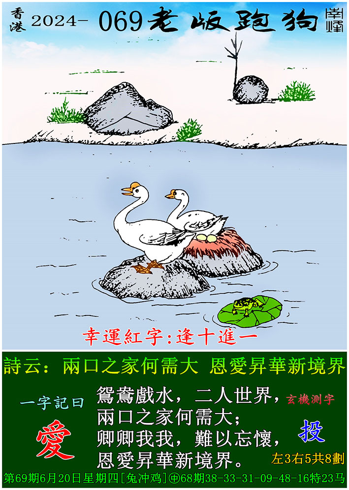069期老版跑狗一字記之曰:【愛】 玄機測字:《投》