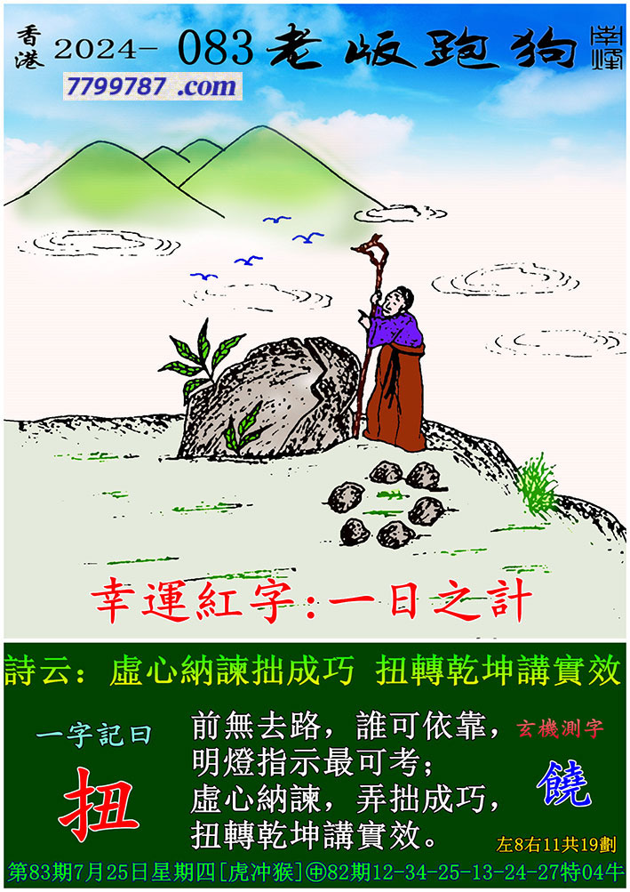 083期老版跑狗一字記之曰:【扭】 玄機測字:《饒》