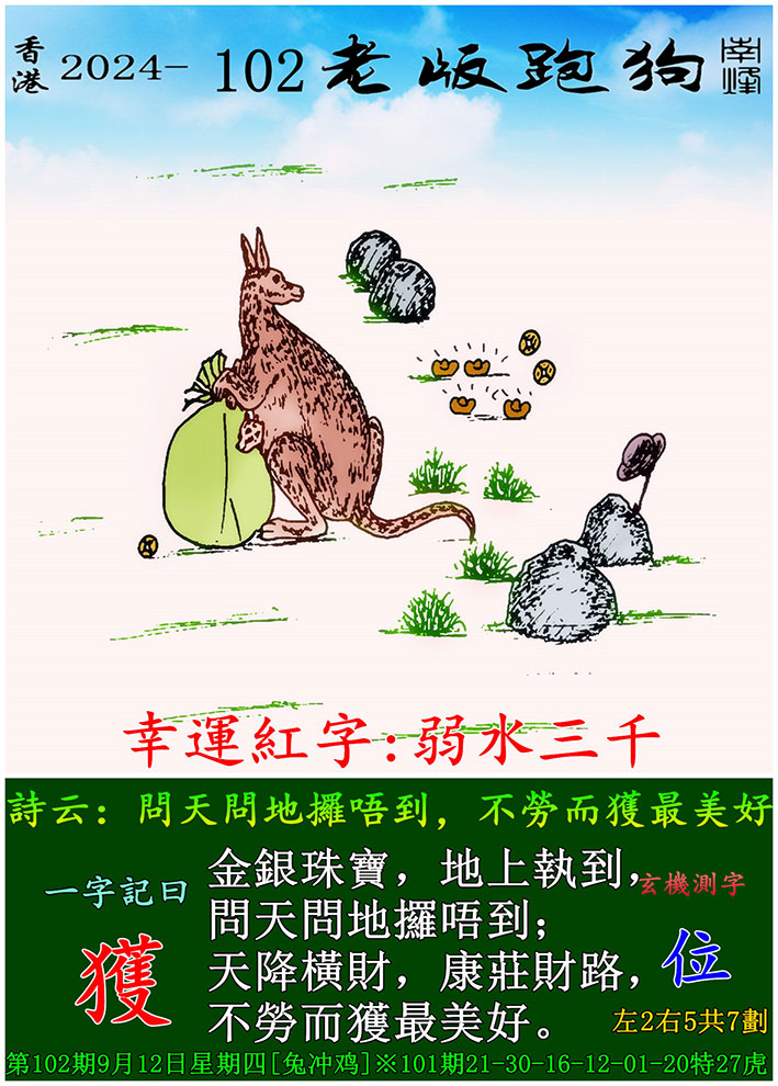 102期老版跑狗一字記之曰:【獲】 玄機測字:《位》