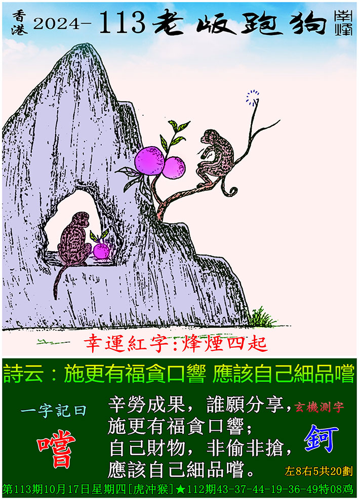 主题 : 113期老版跑狗一字記之曰:【嚐】 玄機測字:《鈳》