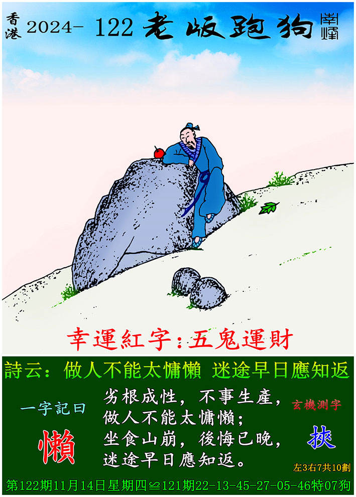 主题 : 122期老版跑狗一字記之曰:【懶】 玄機測字:《挾》