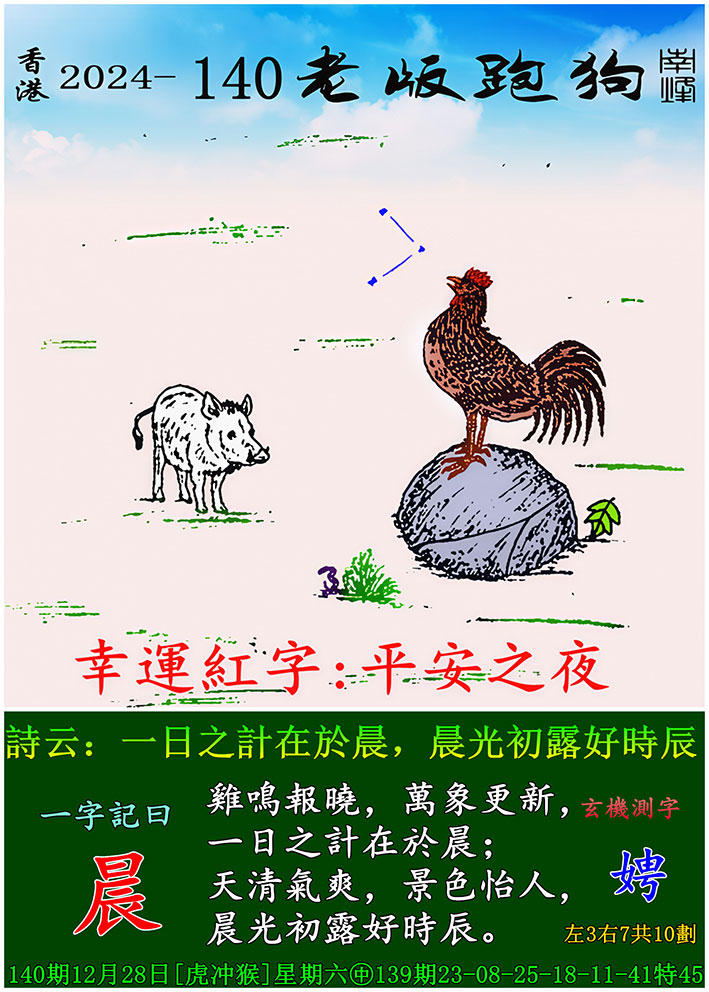 140期老版跑狗一字記之曰:【晨】