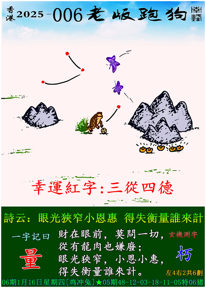 主题 : 006期老版跑狗一字記之曰:【量】 玄機測字:《朽》