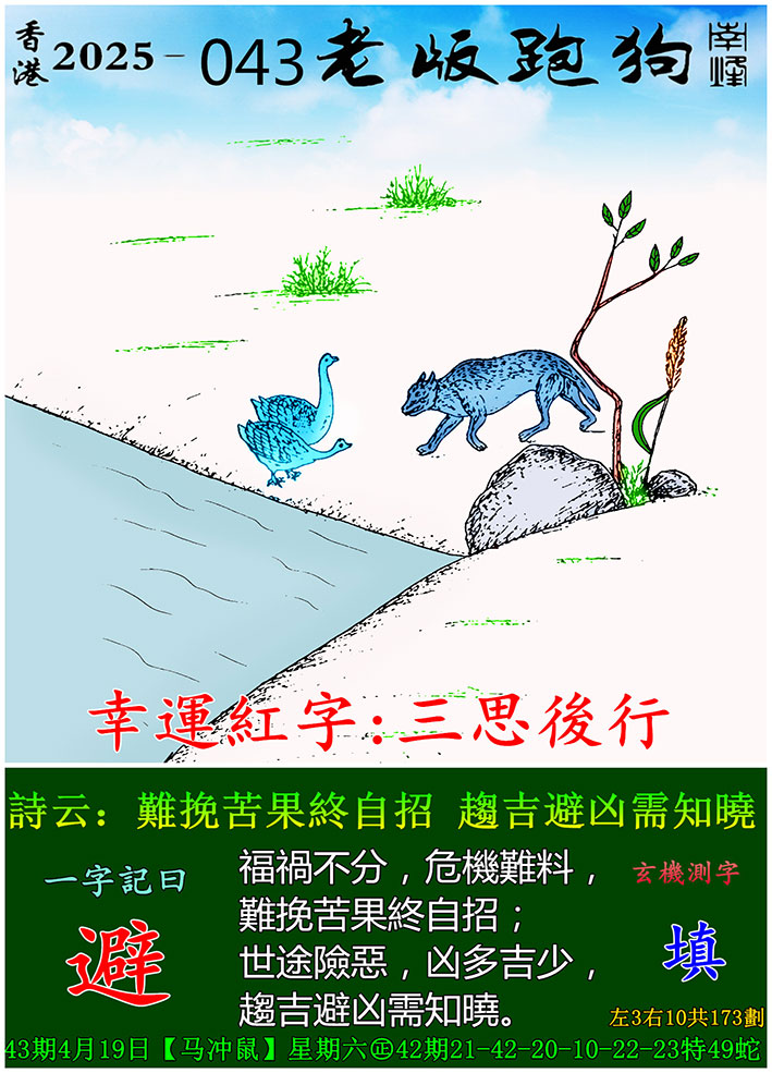 043期老版跑狗一字記之曰:【避】