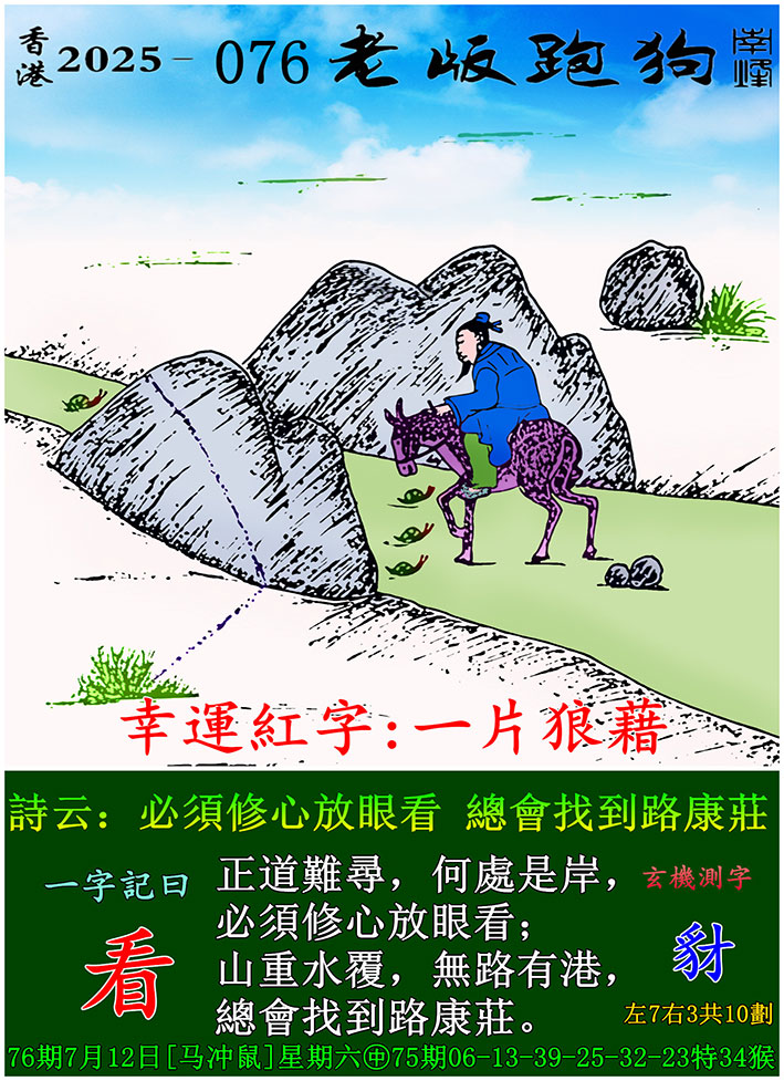 076期老版跑狗一字記之曰:【看】 玄機測字:《豺》