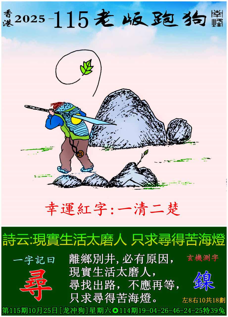 主题 : 115期老版跑狗一字記之曰:【尋】 玄機測字:《鎳》