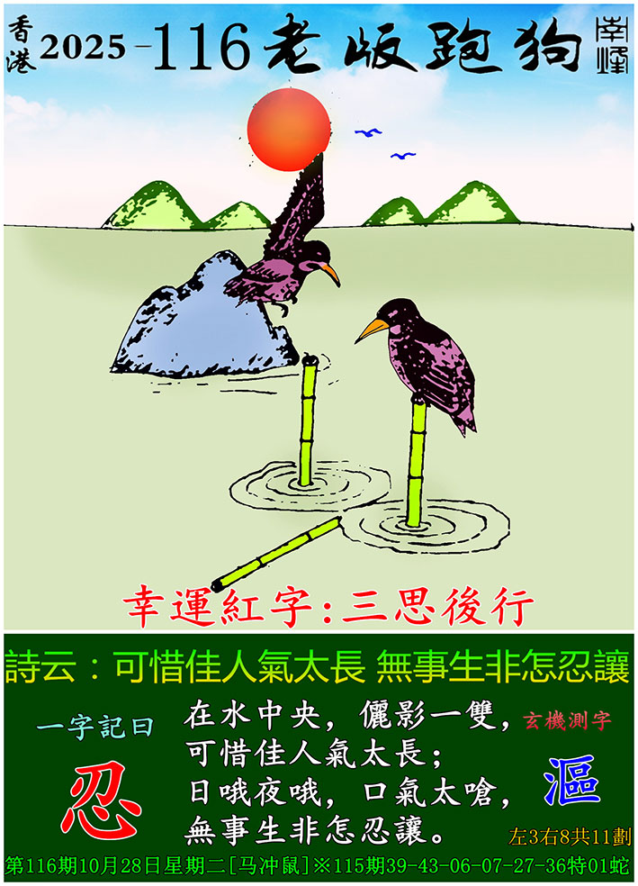主题 : 116期老版跑狗一字記之曰:【忍】 玄機測字:《區》