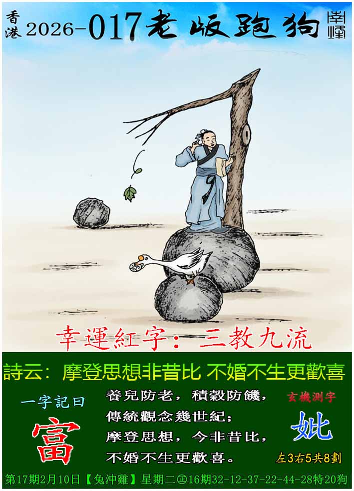 017期老版跑狗一字記之曰:【富】 玄機測字:《妣》