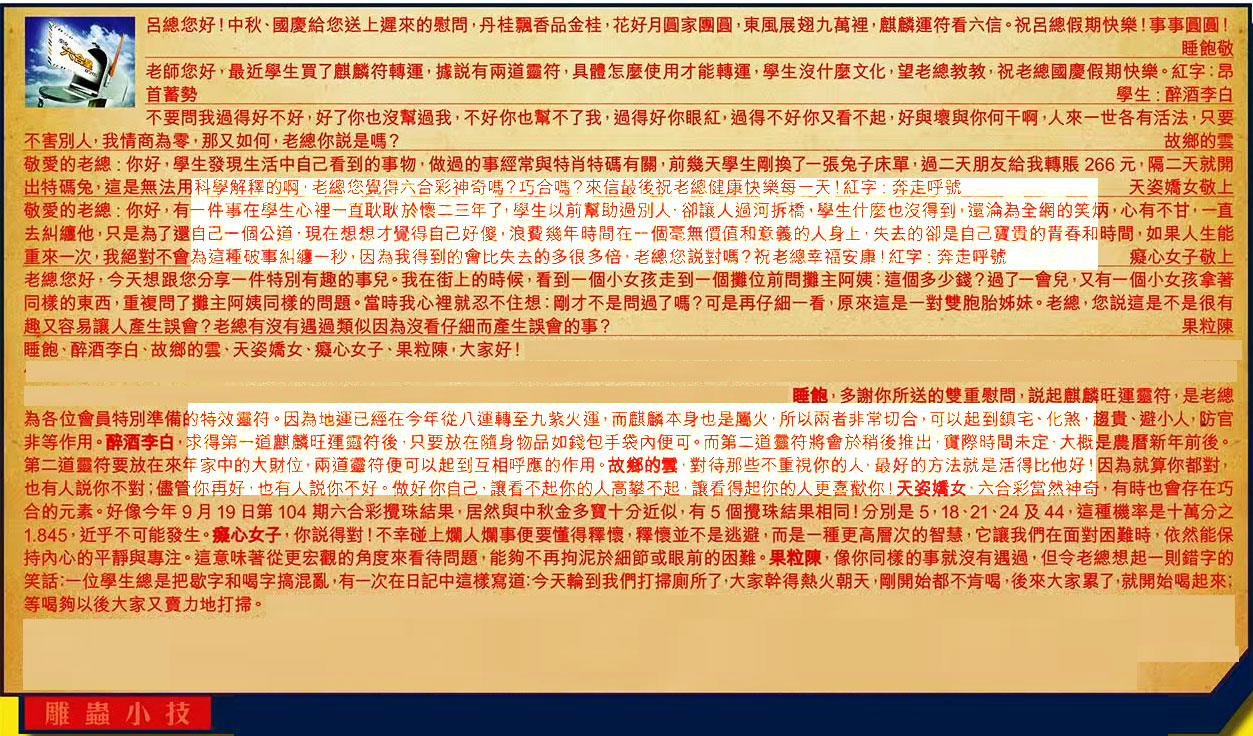 115期:彩民推荐六合皇信箱(紅字:雕蟲小技)