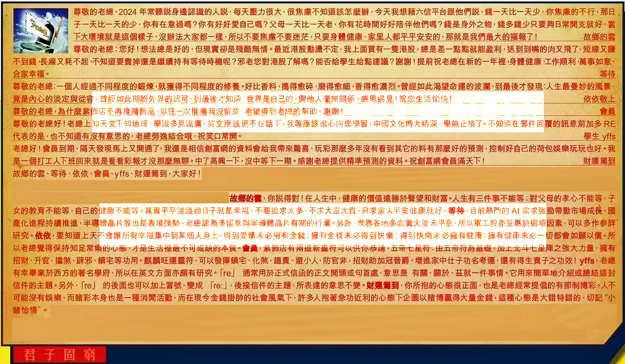【1】.尊敬的老總,2024 年常聽說身邊認識的人說,每天壓力很大,很焦慮不知道該怎麼辦,今天我想藉六信平台跟他們說,錢一天比一天少,你焦慮的不行,那日子一天比一天的少,你有在意過嗎?你有好好愛自己嗎?父母天比一 天老 ,你有花時 間好好陪伴他們嗎?錢是身外之物,錢多錢少只要夠日常開支就好,當下大環境就是這個樣子,沒辦法大家都一樣,所以不要焦慮不要迷茫,只要身體健康,家里人都平平安安的,那就是我們最大的福報了! 故鄉的雲