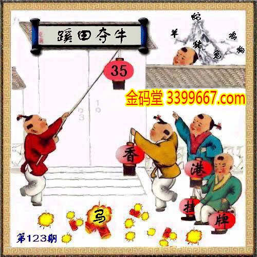 123期正版彩图挂:35爆:马挂牌成语:蹊田夺牛 挂牌出肖:羊猪兔蛇鸡狗