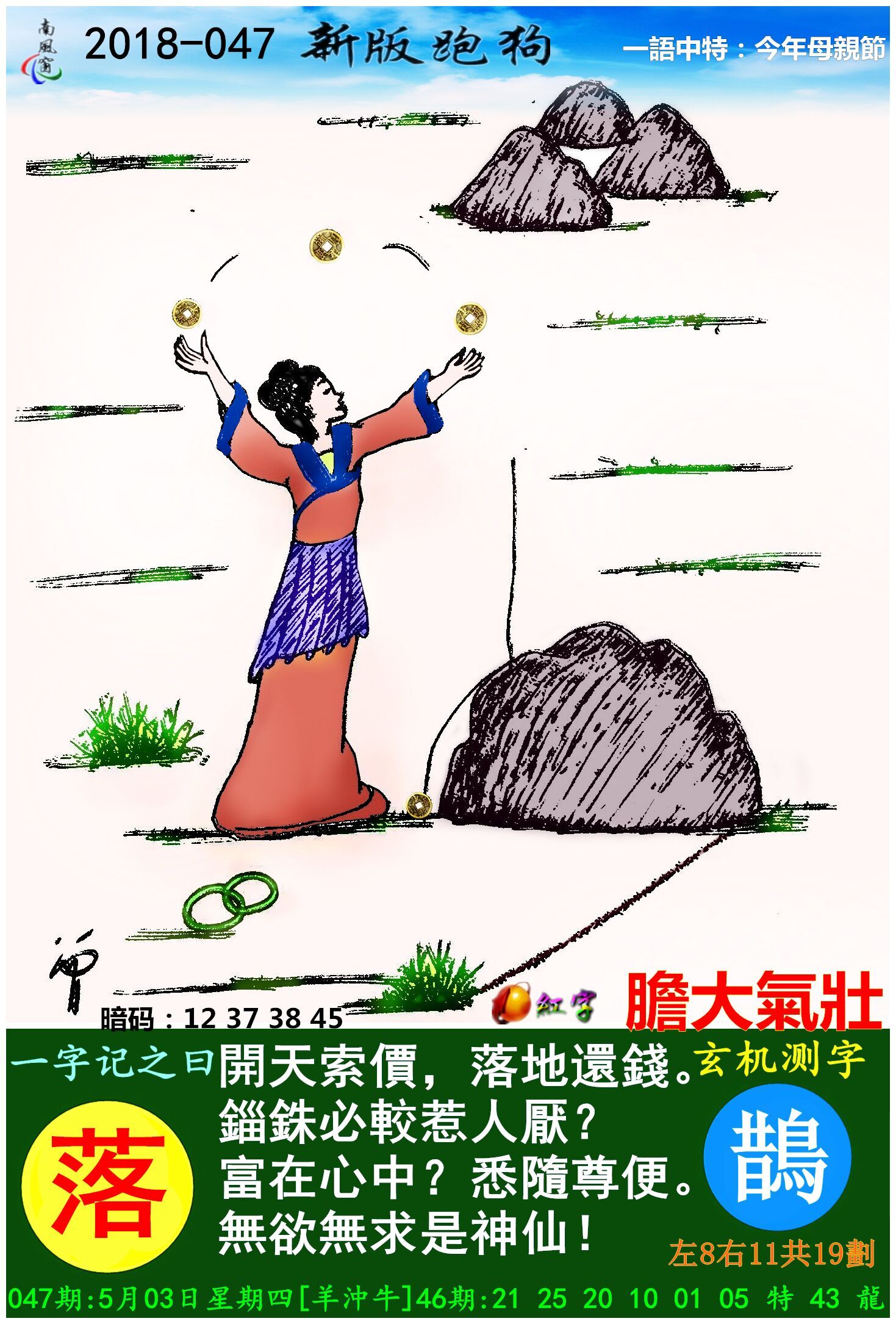 047期新版跑狗一字記之曰:【落】