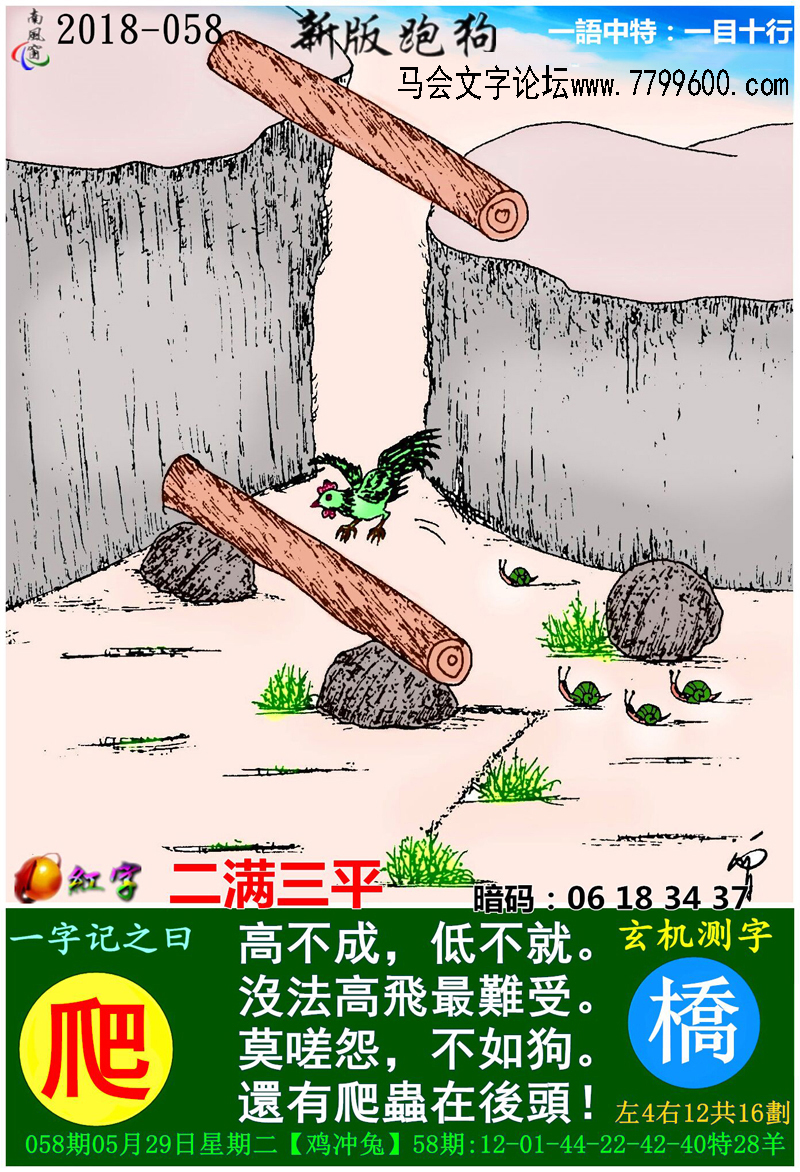 主题 : 058期:新版跑狗一字記之曰【爬】玄機測字《橋》
