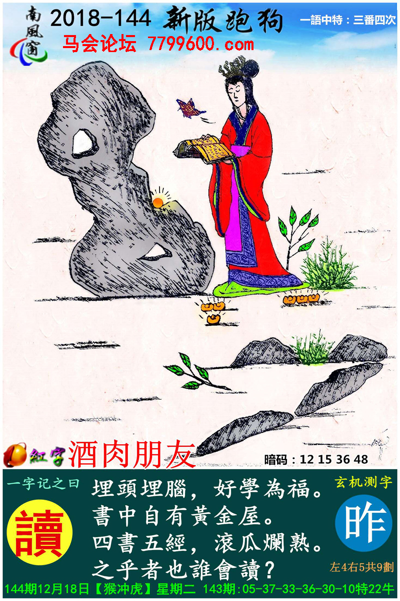 主题 : 144期:新版跑狗一字記之曰【讀】玄機測字:《昨》