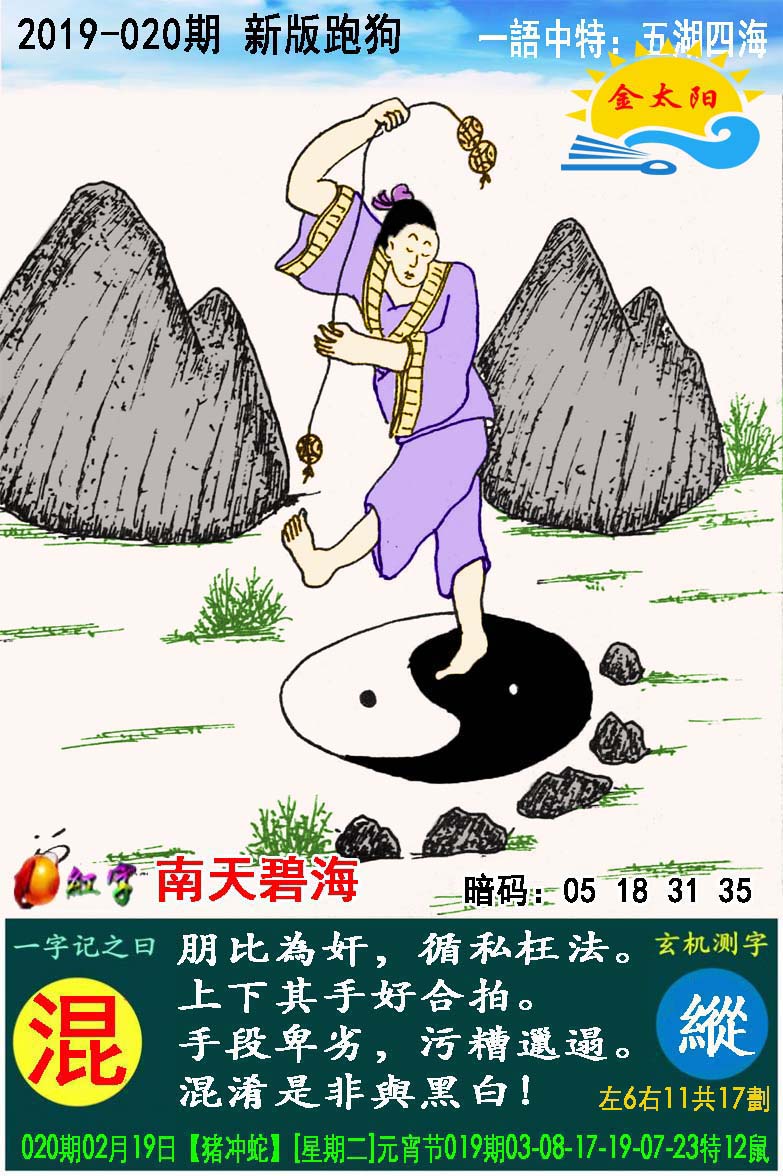 020期:新版跑狗一字記之曰【混】玄機測字:《縱》