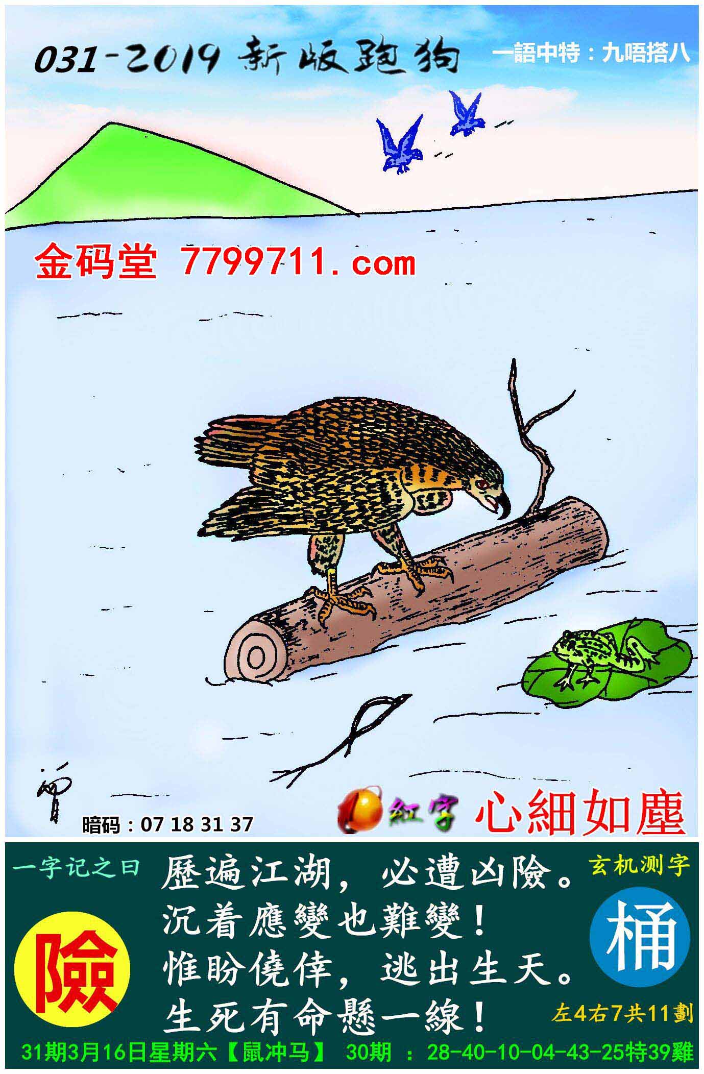 031期新版跑狗一字記之曰:【險】